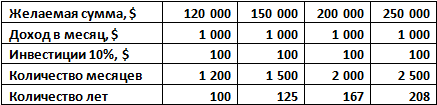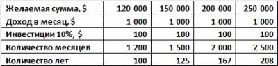 незамедлительно! Считаем вариант простого накопления 120.000$ в так называемый «чулок». Будем исходить из принятых нами в предыдущих